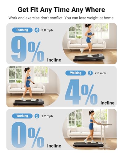 【9-Level Auto Incline Treadmills】 The walking pad treadmill has 9 levels of incline. Different from traditional walking pad , treadmill with incline is equipped with one-button automatic slope adjustment. Easily simulate hill climbs to intensify your session, target different muscle groups, and boosts calorie burning by 3 times.