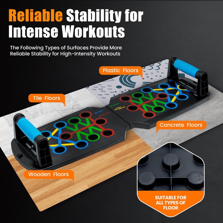 【Unique Push Up Board】9-in-1 Push Up Board – Features 9 angle slots for perfect push-up form, targeting chest, arms, shoulders, core & back for a full-body workout.
