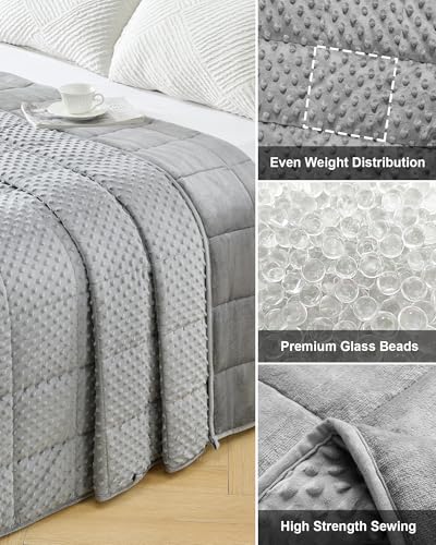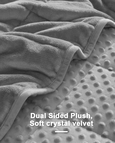Premium Weighted Blanket: the weighted blanket is crafted from plush, soft crystal velvet, designed for year-round use, with one side features smooth, breathable microfiber, while the other offers ultra-soft, cozy minky dots. An extra layer of breathable microfiber minimizes bead leakage and noise, preventing bead tearing and spillage, thereby boosting durability and comfort.