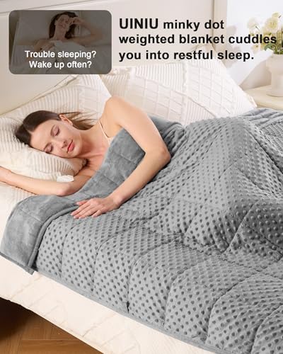 UINIU Weighted Blanket for Adults Queen Size 15 lbs, Soft Cooling Minky Dot Heavy Breathable Blanket for All-Season, Washable Weighted Throw with Glass Beads, 60 x 80 Inches, Grey