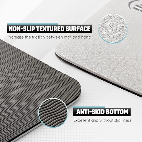 DOUBLE NON-SLIP DESIGN – This workout mat has double-sided non-slip surfaces. Wavy undersides make excellent traction on the floor. It unrolls pretty flat and stays put. Special textured surface prevents your hands and feet from sliding.