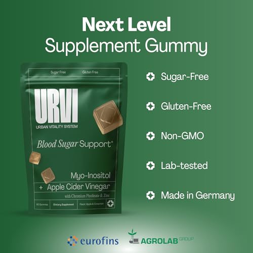 URVI® Blood Sugar Support Gummies – 300mg Apple Cider Vinegar ACV, 150mg Myo Inositol, Chromium & Zinc – for Metabolism & Energy – Keto, Sugar-Free – Apple Cinnamon Flavor – 60 Gummies