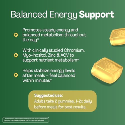 TARGETED INGREDIENTS FOR HEALTHY METABOLIC FUNCTION: Apple cider vinegar is traditionally used to support digestion and metabolic health, while myo-inositol plays a key role in cellular signaling and nutrient utilization. This combination helps your body process carbohydrates efficiently and sustain balanced energy levels. With added zinc and chromium to support normal nutrient metabolism and energy production.*
