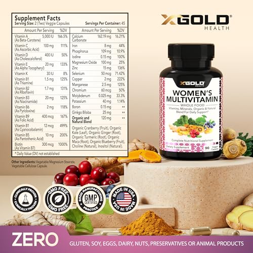 Vegan Women’s Daily Multivitamin 50 Plus with Organic WholeFood Based Natural Ingredients, Ginger, Maca, Multi-Vitamin B Complex & More – Energy Support, Immune System Booster -90 Capsules