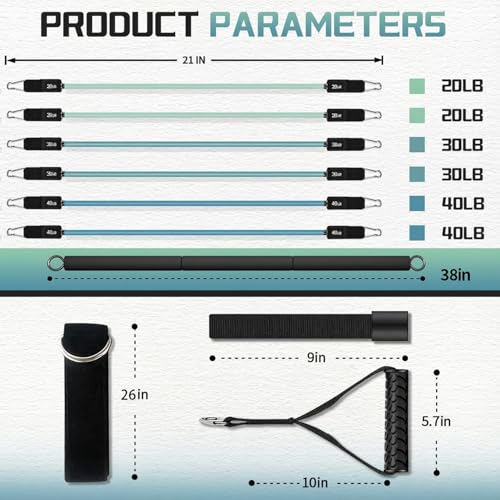 Customized Pilates Bar Kit: It comes with 3-section steel rod with anti-slip and sweat-proof foam, which enables you hold it easily and have a steady, safe exercising. In addition, there comes with 6 resistance tube bands(20lbs, 30lbs, 40lbs), 5 thin loop bands, 2 handles, 2 straps, 1 door anchor, 1 instrustion manual and 1 carrying bag