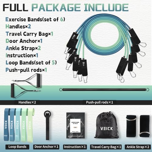 VEICK Pilates Bar Kit with Resistance Bands, Elastic Workout Bands for Men Women, Set of 5 Resistance Loop Bands for Home Fitness Stretching Strength Training
