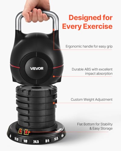 VEVOR Kettlebell, Adjustable Kettlebell with 7 Weight Levels, Die-Cast Aluminum and ABS Material, for Grip Strength Training, Full-body Workout & Cross-Training