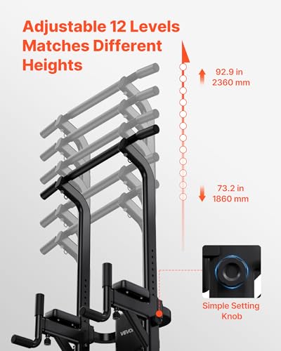 VEVOR Pull Up Bar, 330 LBS Power Tower Dip Station, Workout Dip Station with H-Shaped Stable Base & Back Pad, Adjustable 12 Level Height Free Standing Chin Up Bar for Back, 4-Level Adjustable Back Pad