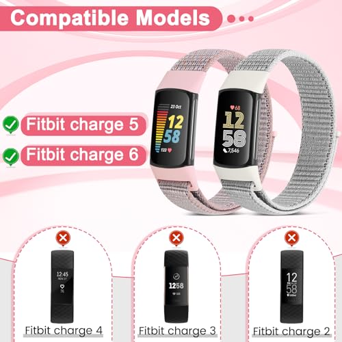 VNDAPT 4 Pack Nylon Watch Bands Compatible with Fitbit Charge 6/Fitbit Charge 5, Adjustable Breathable Replacement Nylon Wristband Fitbit Charge 5 Charge 6 Sport Strap for Women Men