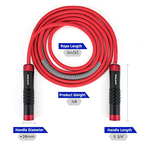 VOXLOVA Weighted Rope – 1LB Heavy Jump Rope for Men Women Fitness Workouts, Non-Slip Aluminum Handles, Premium Skipping Rope for Exercise, Adjustable Length 9MM Solid PVC/Cotton Rope