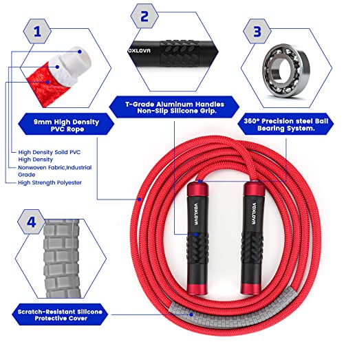 【SMOOTH & TANGLE FREE WEIGHTED JUMP ROPE】– VOXLOVA weighted jump ropes features an extra thick 9mm diameter & 9.8′ length solid weighted cable, which features durable and smooth, ensures the maximum service life and avoids cracking or breaking. The 360° ball bearings in the handles avoids the twisting or winding like other fitness jump ropes. It ensures stable and relaxed rotation, as our weighted jump rope can bear heavy load, which brings you a perfect exercise of jump rope.