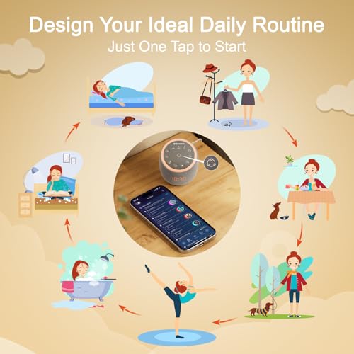 𝐂𝐨𝐧𝐭𝐫𝐨𝐥 𝐭𝐡𝐞 𝐁𝐫𝐢𝐠𝐡𝐭𝐧𝐞𝐬𝐬 – Want complete darkness? The dimmable clock display stays dark as needed, with brightness adjustable or scheduled via APP. All buttons are backlit and light up when pressed, making it easy to use at night