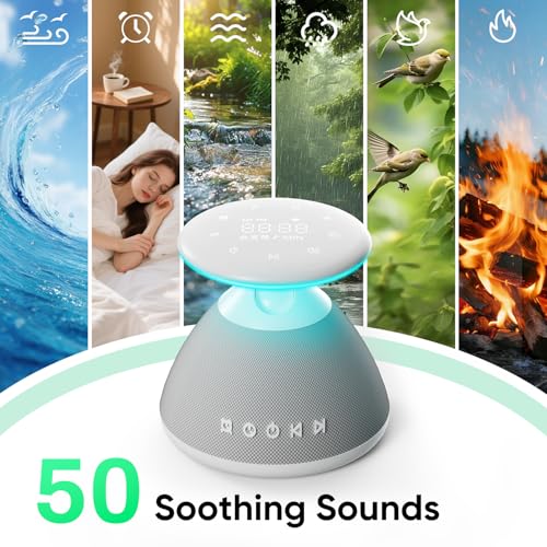 White Noise Sound Machine for Sleeping, 50 Non-Looping Soothing Sounds, 7 Color Night Light with Adjustable Brightness, Timer & Alarm Clock, Touch Screen Control for Baby, Kids, Adults, Home & Travel