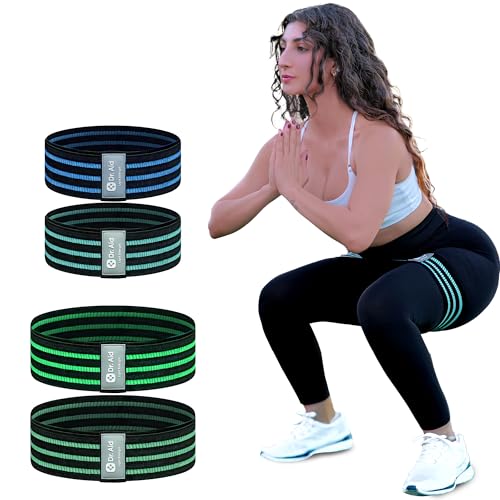Dr. Aid Fabric Resistance Bands for Women & Men – 4 Booty Bands Set (2 Sizes, 2 Tension Levels) – Non-Slip, Non-Curl, Tear-Resistant, Extra Stretchy Workout Bands for Legs, Hips, Glutes & Butt