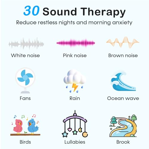 Dimmable Alarm Clock for Bedrooms: Our sleep sound machine for adults includes a customizable alarm clock with 7 gentle wake-up sound options, making your morning rise peaceful and less stressful.