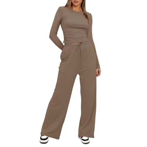 MIUQOO Two Piece Sets for Women Long Sleeve High Waist Wide Leg Tracksuits Casual Workout Lounge Outfits Matching Sets