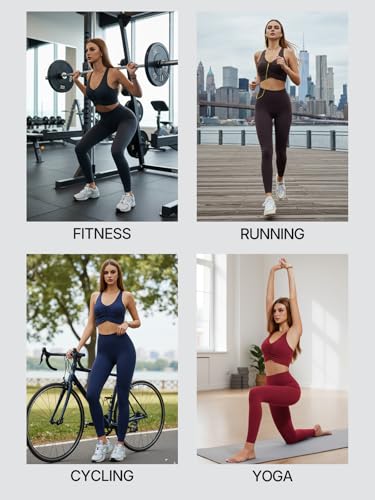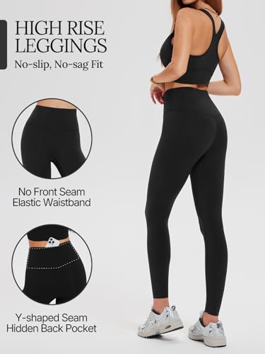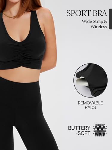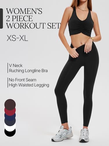 Women’s 2 Piece Workout Set Ruched Longline Sports Bra & High Waisted Leggings with Pocket Removable Pads Yoga Pilates Outfit