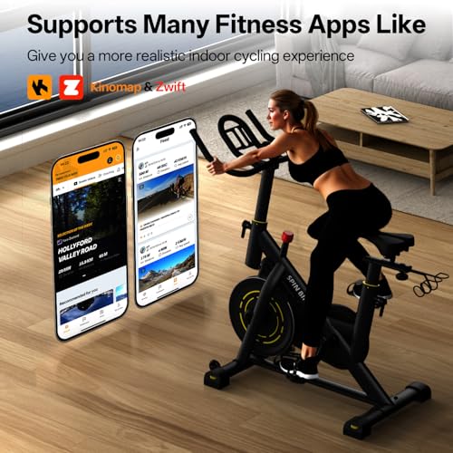 【IMMERSIVE APP-CONNECTED WORKOUTS】This exercise bike for home supports popular fitness apps like Kinomap, delivering immersive riding routes, structured training plans, and real-time performance data. Change into on a regular basis indoor cycling into a smarter, more engaging fitness experience.