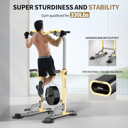 Z ZHICHI Pull Up Dip Station For Home Gym Strength Training Fitness Workout Station Chin-Ups Push-Ups Pull-Ups Dip-Ups 330LBS T055CDC
