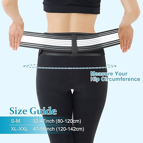 FIT HIP CIRCUMFERENCE SIZE -The SI Belt size (S-M)fits a hip circumference of 32 – 47 inches, and the size (L-XXL) fits a hip circumference of 47 – 56 inches. This sacroiliac belt is suitable for both women and men, it may be worn inside or outside of clothes. Measure right above your hips, see our images for a visual illustration.