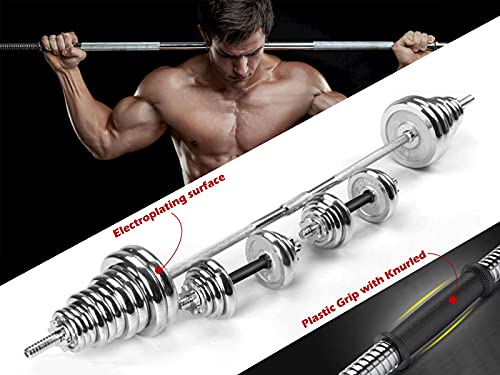 【MULTI-FUNCTIONAL DESIGN】Our 2-in-1 dumbbell-barbell set means that you can have a versatile workout. The dumbbells can be utilized to sculpt your arms, whilst the barbell setup means that you can practice dead-lifts or squats. This product is perfect for making improvements to overall health or encouraging weight loss. It also helps enhance the upper body, core muscles, and lower body. The adjustable design makes it easy to stay fit at home.