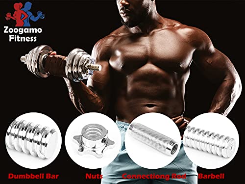 Zoogamo Cast Iron Adjustable Dumbbells Weight Set to 110 Lbs, Free Weight with Connecting Rod Used As Barbell, for Men and Women Home Gym Work Out Training Fitness Equipment All-Purpose